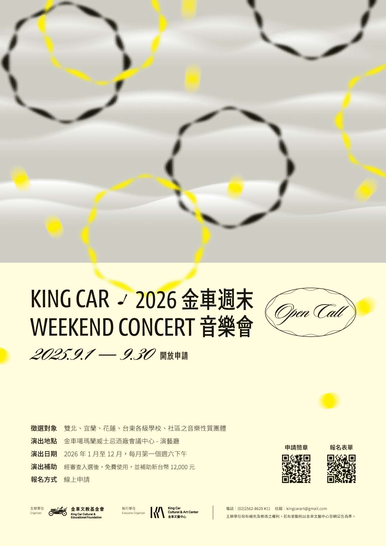 2026年金車週末音樂會公開徵選,歡迎有興趣的同學踴躍參加,活動詳如附件。