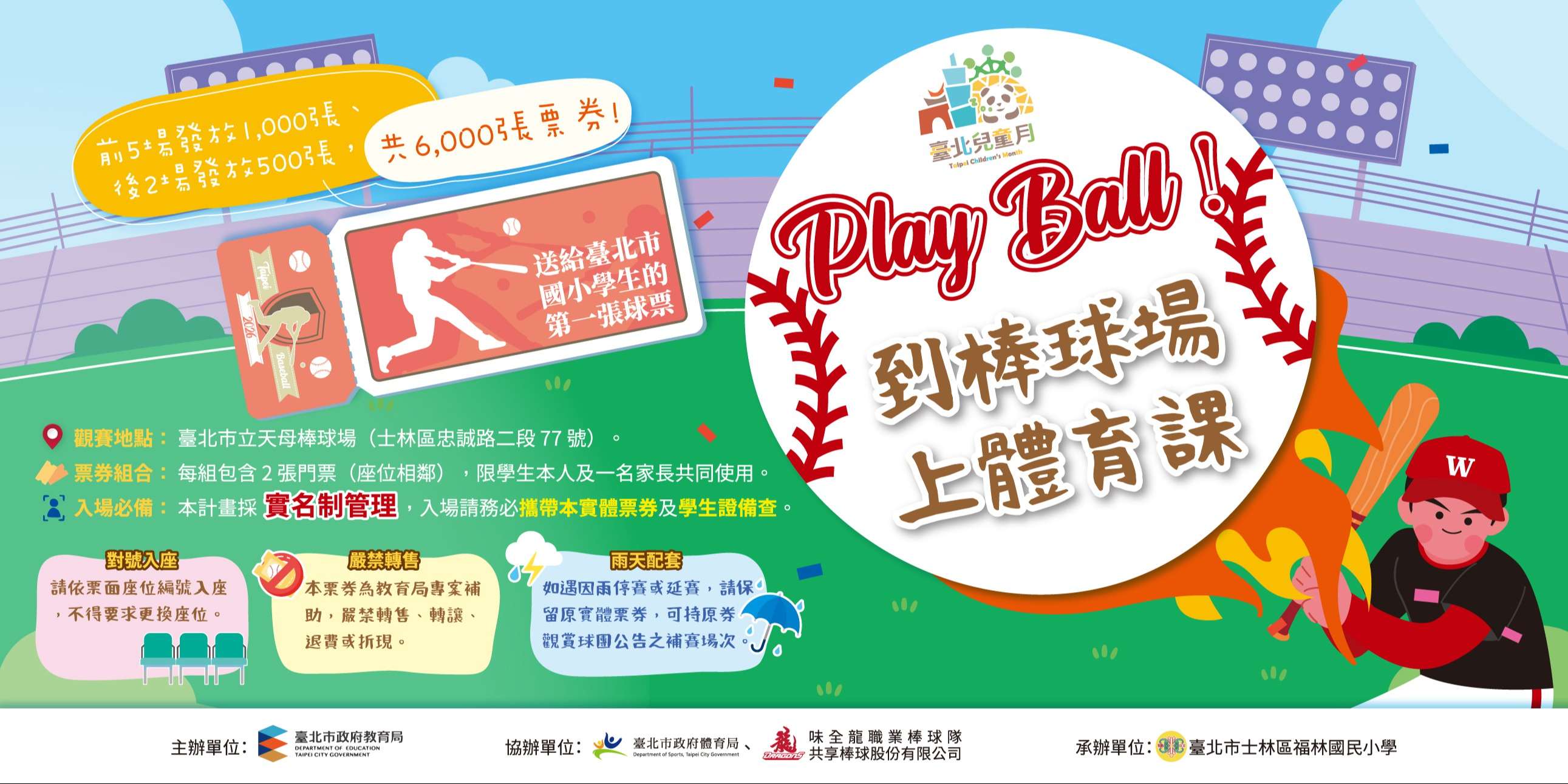 一、為培養學生運動素養,並結合本市指標性運動場域資源, 教育局結合4月兒童月規劃補助學生進場觀賞職業棒球賽事, 落實體育學習走出校園。