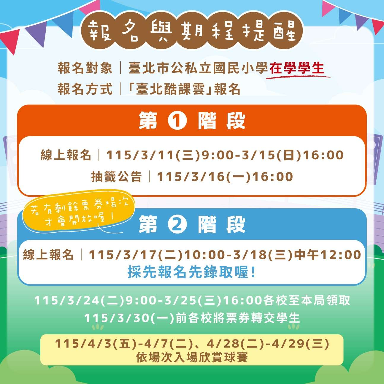 (四)報名期程:第一階段自115年3月11日(星期三)上午9時至3月15日(星期日)下午4時止。